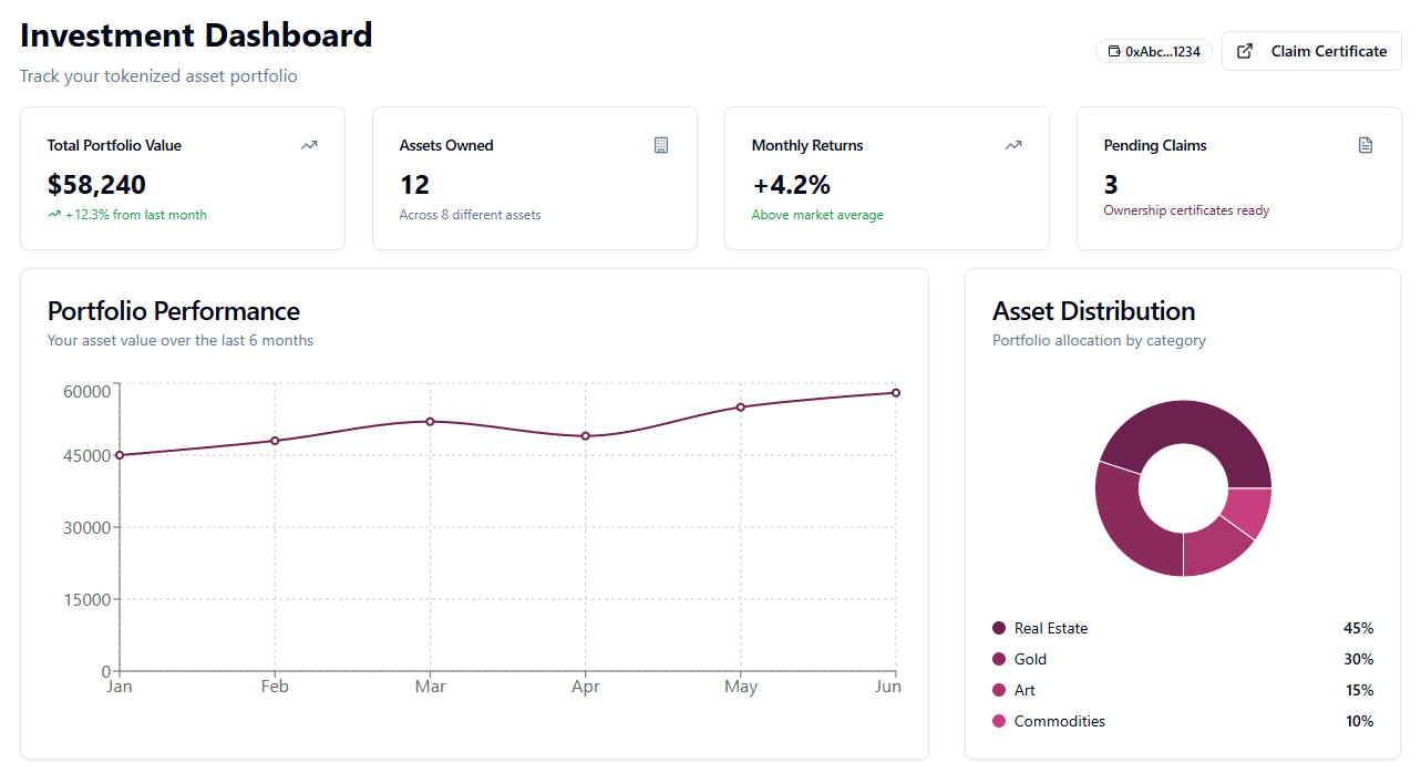 Delivered live valuation updates, asset performance tracking, and transparent transaction logs.